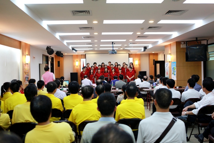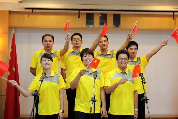 隨后,意猶未盡的選手們紛紛上臺,再展歌喉。比賽在全體人員高唱《沒有共產(chǎn)黨就沒有新中國》的歌聲中圓滿結(jié)束。這次紅歌賽抒發(fā)了員工愛國愛黨的情懷,展現(xiàn)了房建人的風(fēng)采,激發(fā)員工的集體榮譽感,增強合作精神,也豐富了企業(yè)文化,受到大家的歡迎。