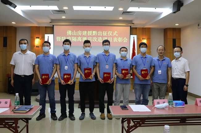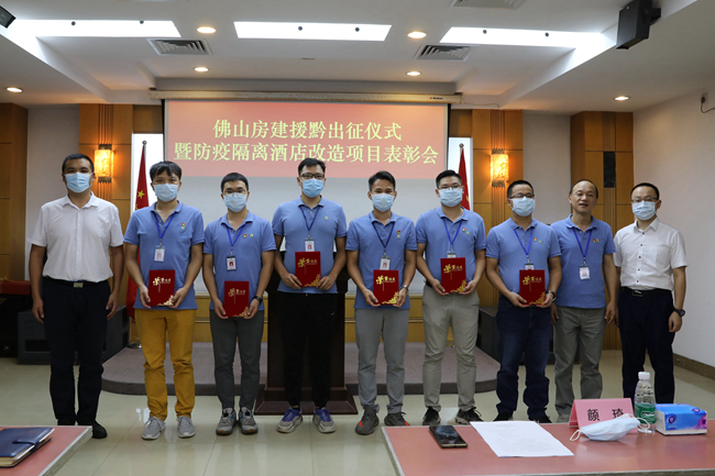 7月8日上午,佛山房建集團(tuán)舉行援黔出征儀式暨防疫隔離酒店改造項(xiàng)目表彰會,一方面為赴貴州黔東南州對口援建青年工程師包劍靈同志送行,另一方面為防疫隔離酒店改造項(xiàng)目的優(yōu)秀工作者進(jìn)行表彰。